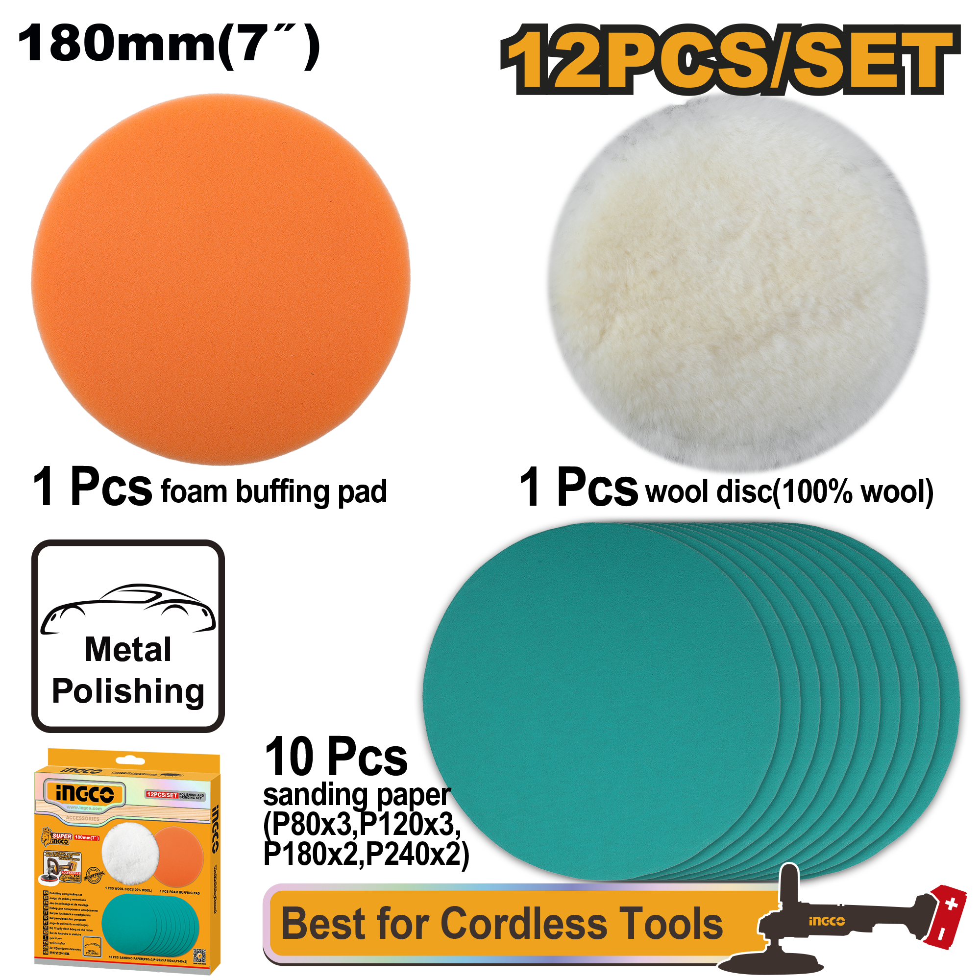 / JOGO DE ACESSÓRIOS PARA POLITRIZ 180MM C/12PC INGCO APG18012